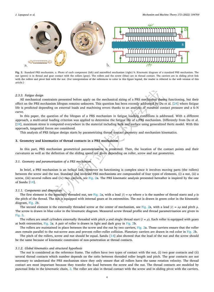 Fatigue lifespan of a planetary roller-screw mechanism(22年行星滾柱絲杠機(jī)構(gòu)的疲勞壽命)